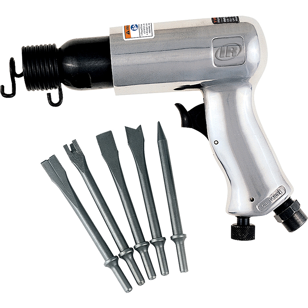 116K Ingersoll Rand Standard Air Hammer 5PC Chisel Set, 3500 BPM. Actuation/Throttle Type/Switch Type: Trigger Air Consumption @ Load (cfm): 15 cfm Air Consumption @ Load (l/min): 425 l/min Air Inlet: 1/4” NPT Air Pressure (PSI): 90 PSI