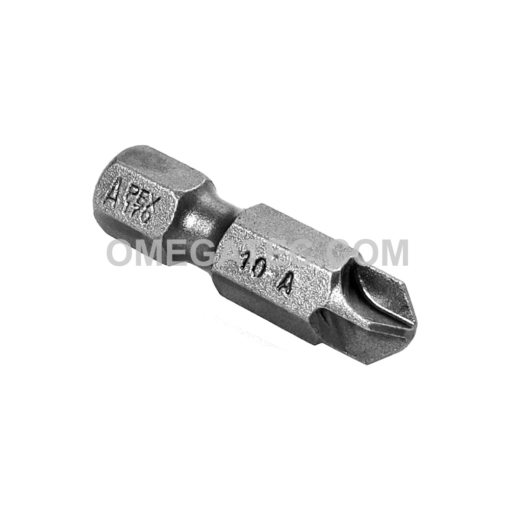 Apex 1/4” power drive Torq-Set ® bits from Apex Fastener Tools, formally Cooper Tools. Apex Torq-Set ® bits feature cruciform screw drives and are used in torque-sensitive applications. The Apex Torq-Set ® head is similar in appearance to a Phillips ® drive in that it has a cross with 4 arms.