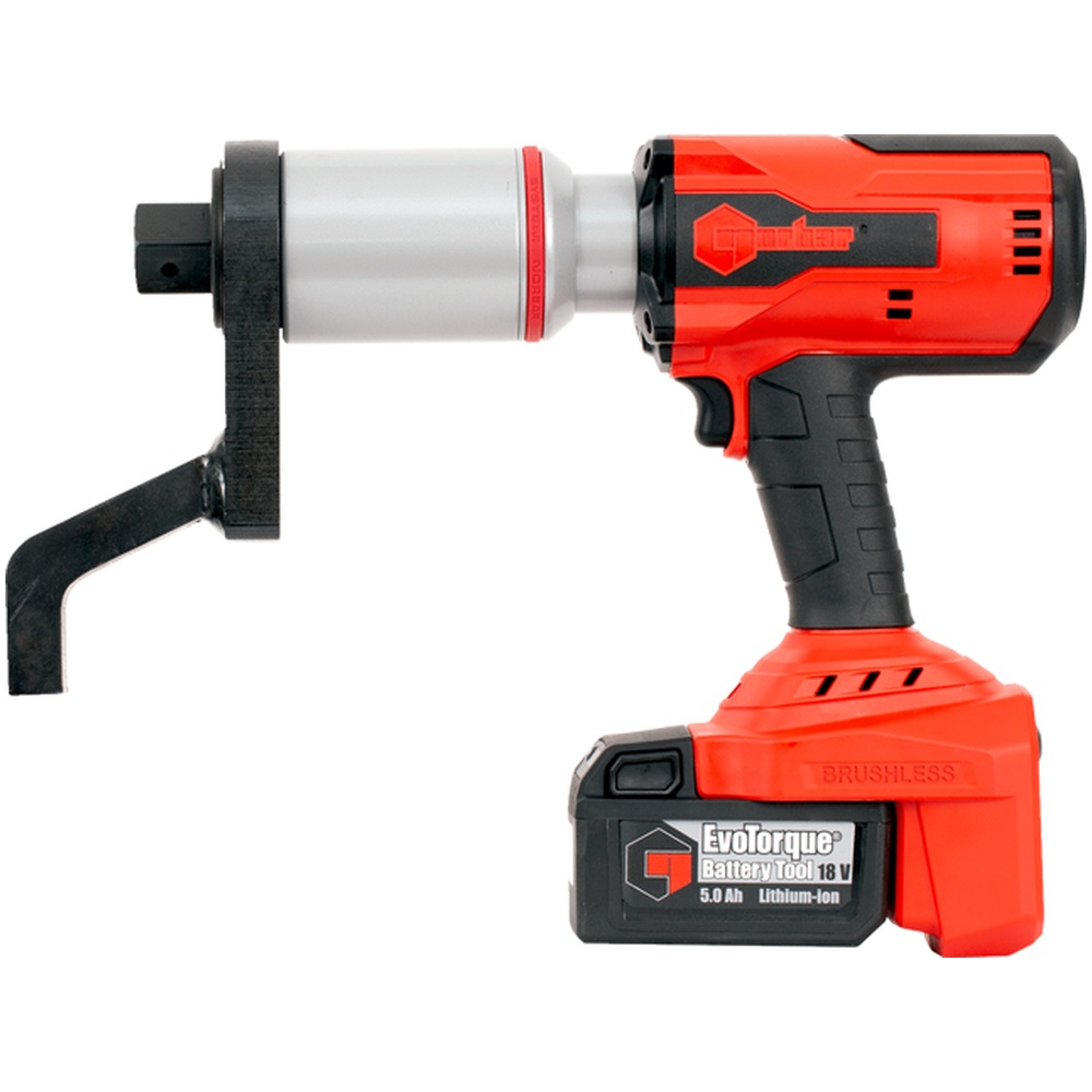 180946 – Norbar EvoTorque EBT Auto Single Speed Dual Trigger Bluetooth Battery Powered Torque Tool, 400 – 2700 Nm / 295 – 2000 ft-lbs. Tool Weight: 5.9kg Reaction Plate Weight: 1.7kg Output Speed: 3.3RPM Battery Weight: 0.8kg Accuracy: Up to ?3%