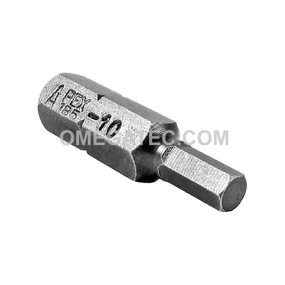 Apex® 1/4” socket head (Hex-Allen) hex insert bits, SAE. Hex Size: 9/64” Overall Length (in.): 1” Overall Length (mm): 25mm