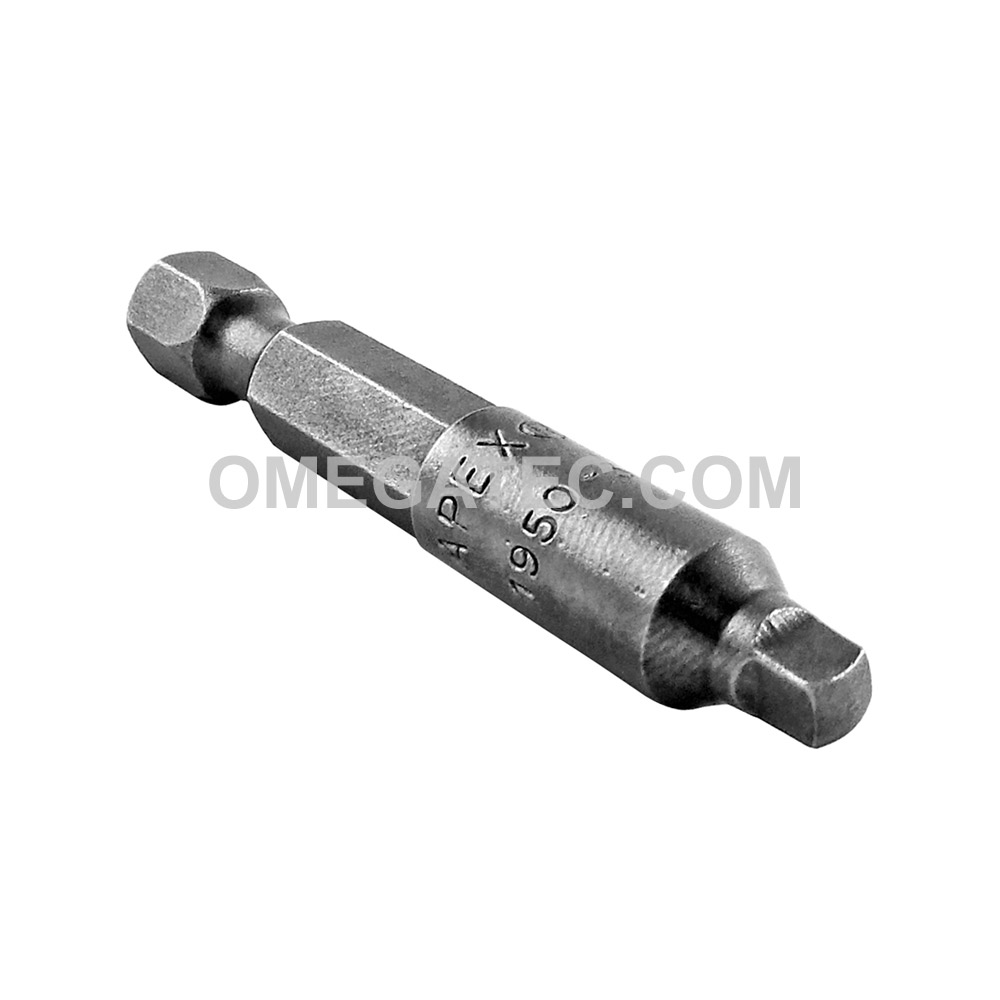 Apex 1/4” square recess hex power drive bits with turned body from Apex Fastener Tools, formally Cooper Tools. The four sides of square recess bits from Apex Fastener Tools are at right-angles to each other. The opposite sides of Apex square recess bits are parallel.