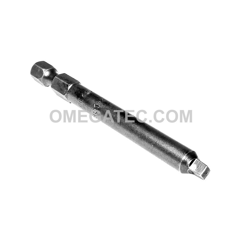 Apex® 1/4” square recess hex power drive screwdriver bits with turned body. Point Size: 2 Nominal Size (in.): 1/8” Overall Length (in/mm): 2 3/4”/ 70mm Turned Length (in./mm): 2”/ 51mm