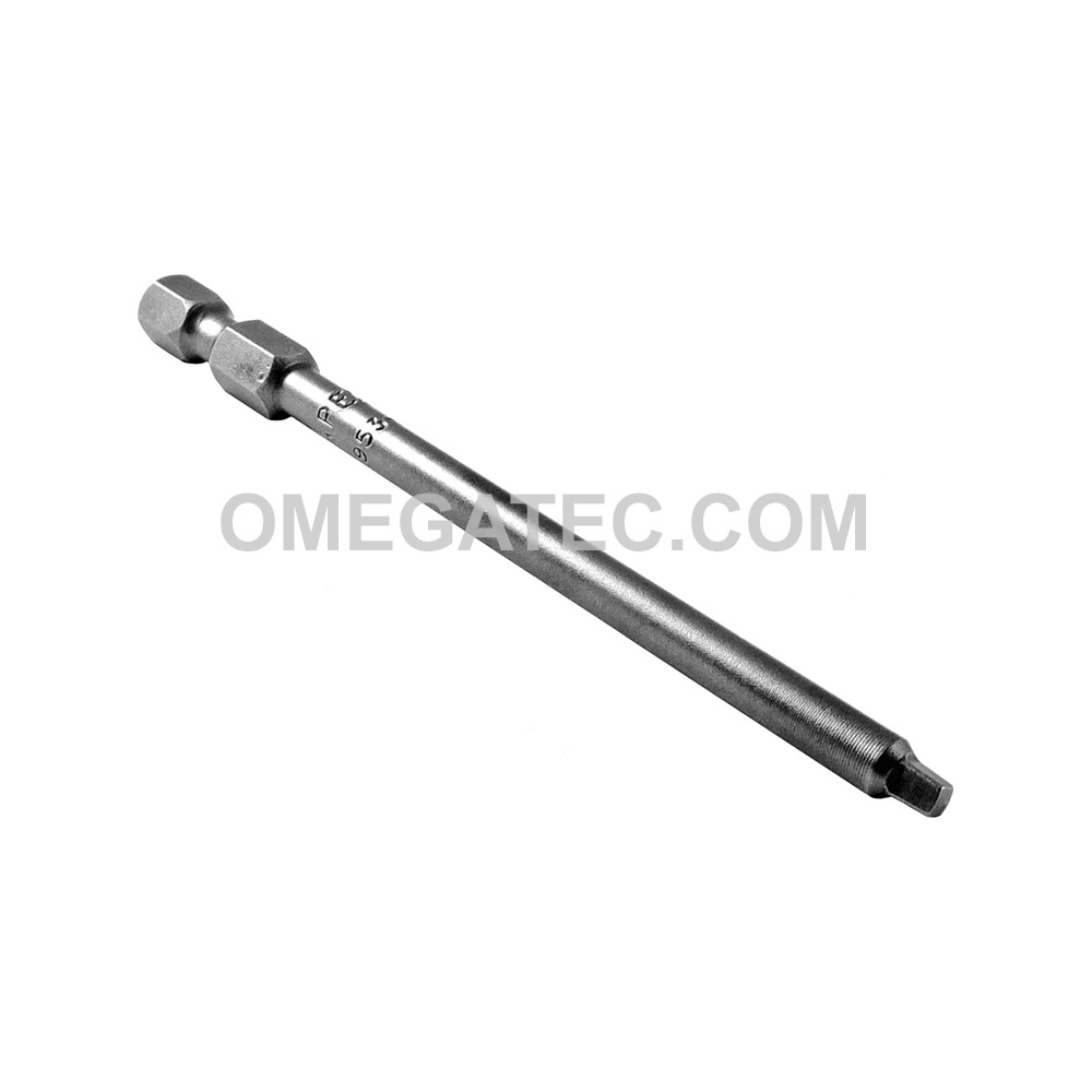 Apex® 1/4” square recess hex power drive screwdriver bits with turned body. Point Size: 1 Nominal Size (in.): 3/32” Overall Length (in/mm): 3 1/2”/ 89mm Turned Length (in./mm): 2 3/4”/ 70mm