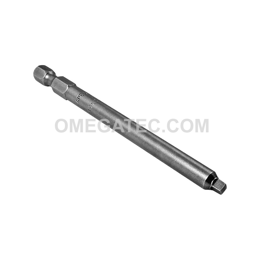 Apex® 1/4” square recess hex power drive screwdriver bits with turned body. Point Size: 2 Nominal Size (in.): 1/8” Overall Length (in/mm): 3 1/2”/ 89mm Turned Length (in./mm): 2 3/4”/ 70mm