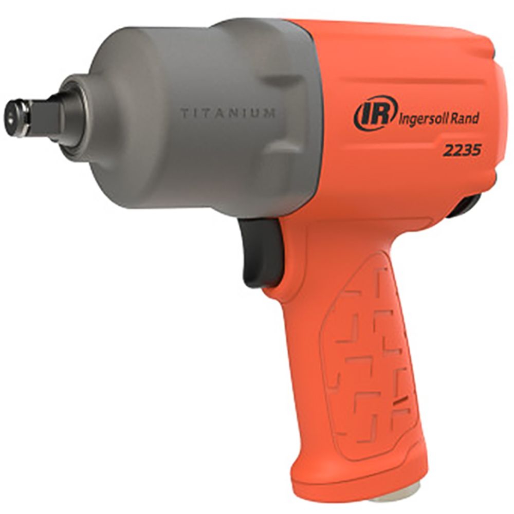 VISIBILITY: The orange 2235TiMAX-O impact wrench allows you to see it on the job and in the garage, while customizing your toolbox. Punish the toughest bolts with 1350 ft-lbs of Nut-Busting Torque powered by Ingersoll Rands finely tuned twin-hammer impact mechanism. The 4-position power regulator and one-handed forward/reverse push button control give you the control to do the job right the first time. Every component, every mechanism and every function of the 2235TiMAX-O has been put through the most rigorous testing to ensure it always performs in the face of the toughest applications. The 2235TiMAX-O is a finely tuned workhorse. Optimized for the vehicle repair industry, heavy trucks, tire lane, fleet maintenance, body shops, general industrial use, MRO, rail, heavy machinery, oil and gas, shipbuilding, and construction. Titanium hammer case is designed to be strong and durable, to protect the interior components of the air impact wrench. Impact- and chemical-resistant housing protects against repeated drops and exposure to shop fluids. A lightweight, balanced, air impact wrench that weighs just 4.6lbs.