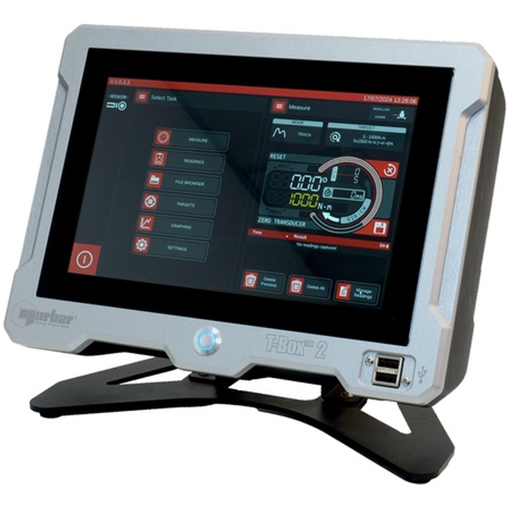 The 43542 – Norbar T-Box 2 Torque Measurement Instrument w/ Touch Screen delivers a seamless and complete torque data package for advanced testing, calibration, and analysis. Equipped with six dedicated measurement modes – Track, Click, Dial & Electronic, Stall, Screwdriver, and Hydraulic – it supports a wide range of torque tools and applications. A 10.1″ multi-touch screen with on-screen graphic icons ensures simple navigation and quick setup, while a fast 2.3 GHz CPU, 4GB RAM, and 120GB SSD storage provide smooth, reliable performance and extensive data capacity. Users can configure torque, torque-and-angle, and rate targets, set thresholds, and predefine multiple targets to suit varied testing requirements. Dual task windows enable simultaneous activities such as graphing cycles while measuring against targets, enhancing productivity and analysis accuracy. Continuous output of up to 100 readings per second and export capability in CSV and JSON formats allow seamless integration with third-party software and digital systems.