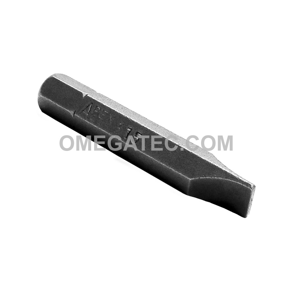 Apex slotted bits, 1/4” hex insert bits. Slotted bits from Apex Fastener Tools can be used for driving screws and fasteners with power tools, hand tools and pneumatic tools. Apex offers a wide selection of slotted bits, which are popular throughout the aviation industry as well as automotive, heavy industry or anywhere quality tooling products are required. The Apex tool brand, formally known as Cooper Tools, is known worldwide for its’ quality construction and durability in demanding conditions.
