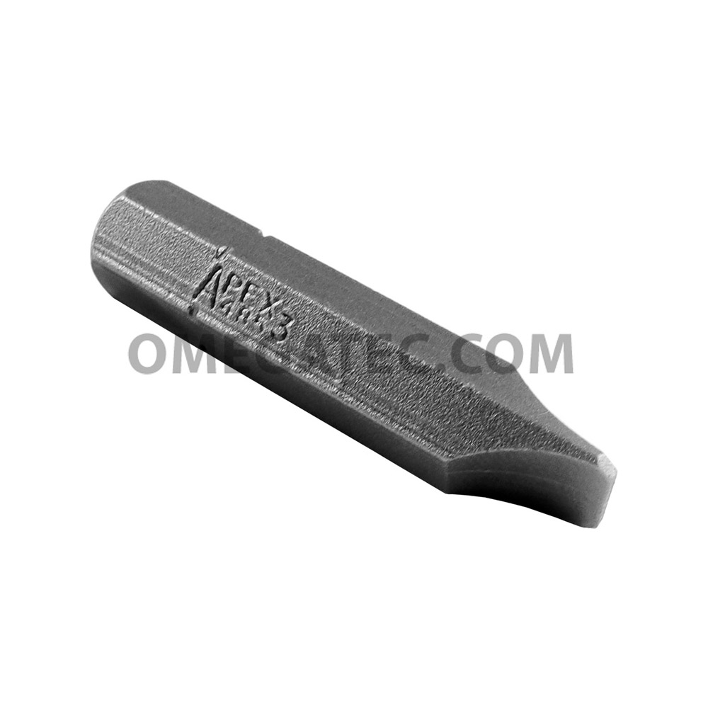 Apex slotted bits, 5/16” hex insert bits. Slotted bits from Apex Fastener Tools can be used for driving screws and fasteners with power tools, hand tools and pneumatic tools. Apex offers a wide selection of slotted bits, which are popular throughout the aviation industry as well as automotive, heavy industry or anywhere quality tooling products are required. The Apex tool brand, formally known as Cooper Tools, is known worldwide for its’ quality construction and durability in demanding conditions.
