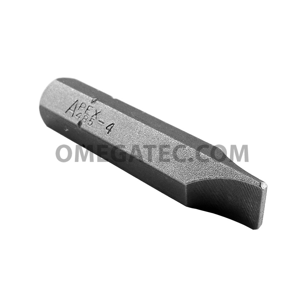 Apex slotted bits, 5/16” hex insert bits. Slotted bits from Apex Fastener Tools can be used for driving screws and fasteners with power tools, hand tools and pneumatic tools. Apex offers a wide selection of slotted bits, which are popular throughout the aviation industry as well as automotive, heavy industry or anywhere quality tooling products are required. The Apex tool brand, formally known as Cooper Tools, is known worldwide for its’ quality construction and durability in demanding conditions.