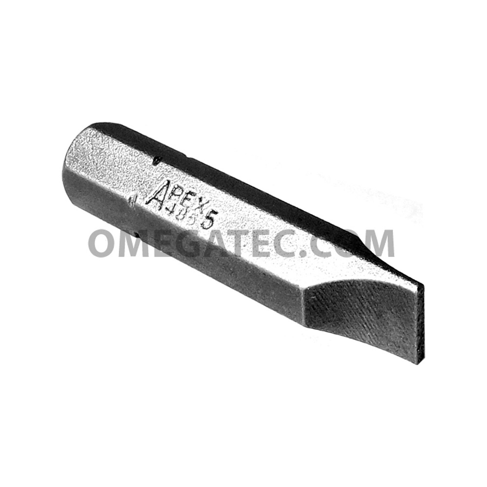 Apex slotted bits, 5/16” hex insert bits. Slotted bits from Apex Fastener Tools can be used for driving screws and fasteners with power tools, hand tools and pneumatic tools. Apex offers a wide selection of slotted bits, which are popular throughout the aviation industry as well as automotive, heavy industry or anywhere quality tooling products are required. The Apex tool brand, formally known as Cooper Tools, is known worldwide for its’ quality construction and durability in demanding conditions.