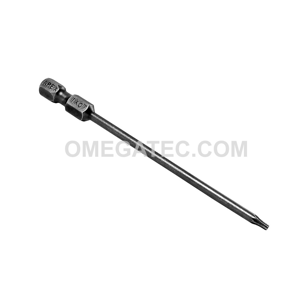 Apex® 1/4” hex power drive Torx ® screwdriver bits. Driver Size: T-07 Major Diameter: 0.077 Body Diameter (in./mm): .119/ 3.0mm Overall Length (in./mm): 3 1/2”/ 89mm