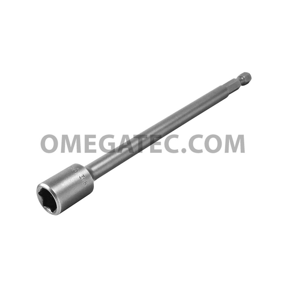 Apex® 1/4” power drive nutsetter, SAE, non-magnetic, 6 point square opening. Size: 3/8” Overall Length: 6” Socket Nose Diameter: 9/16”