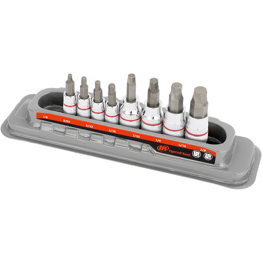 752042X Ingersoll Rand 8PC Tech Solutions SAE Bit Socket Set. Color: Silver Country of Origin: Taiwan ECCN (Export Control Classification Number): EAR99 Power Source: Hand Tool Product Height: 2.63” / 67mm Product Length: 2.88” / 73mm