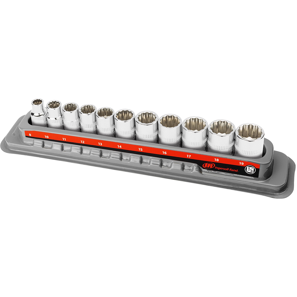 752047X Ingersoll Rand 11PC 3/8” Drive Shallow Socket Set – Metric 12 Point. Color: Silver Country of Origin: Taiwan Drive Size: 3/8” ECCN (Export Control Classification Number): EAR99 Power Source: Hand Tool Product Height: 1.88” / 48mm