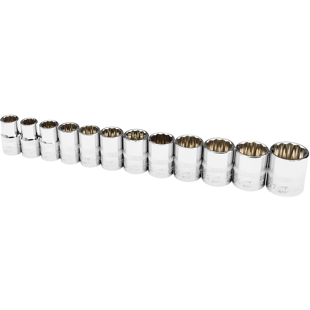 752051X Ingersoll Rand 12PC 1/2” Drive Shallow Socket Set – Metric 12 Point Description