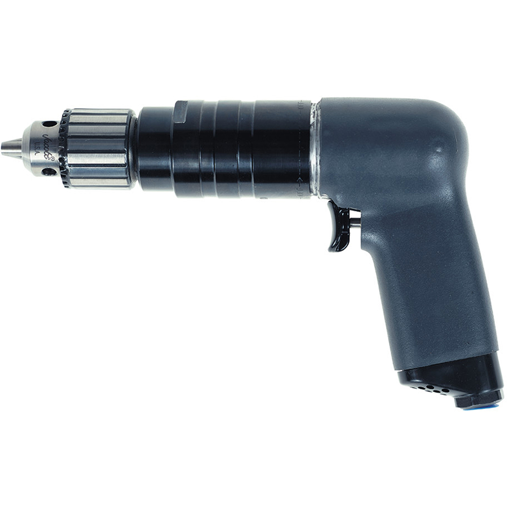 7AMST6 Ingersoll Rand 130.1 in-lbs Pistol Grip Air Drill, 3/8” Keyed Chuck. Actuation/Throttle Type/Switch Type: Feather-Touch Trigger Air Consumption @ Load (cfm): 25 cfm Air Consumption @ Load (l/min): 700 l/min Air Inlet: 1/4”