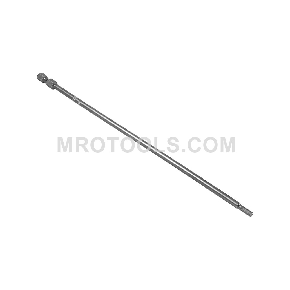 Apex® 1/4” socket head (Hex-Allen) hex power drive bits, metric. Hex Size: 3mm Overall Length (in.): 8” Overall Length (mm): 203mm