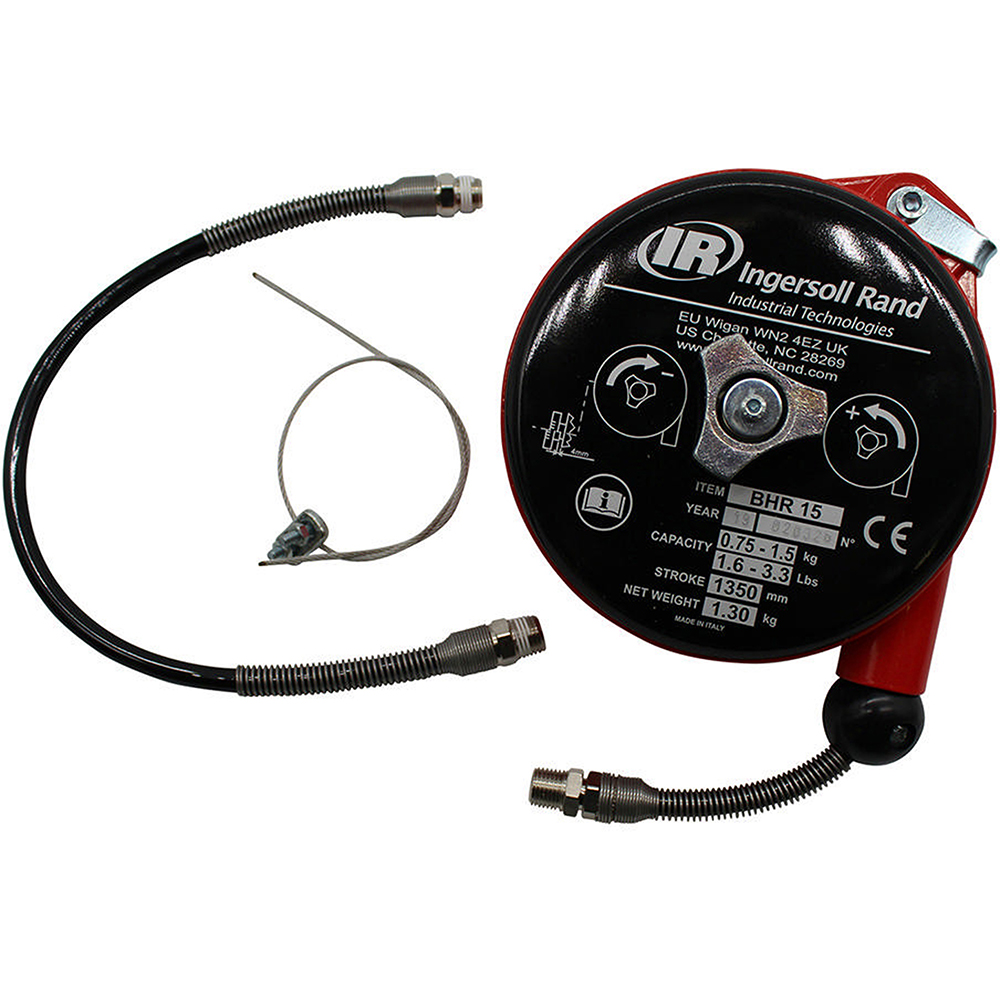 Built with user-focused innovation, the BHR-15 Ingersoll Rand Hose Reel Spring Balancer, 1.5-3.3lbs provides several key advantages: Aluminum body. Nylon Hose. Adjustable capacity. Adjustable stroke limiting device. Designed for one-way shutoff operation.