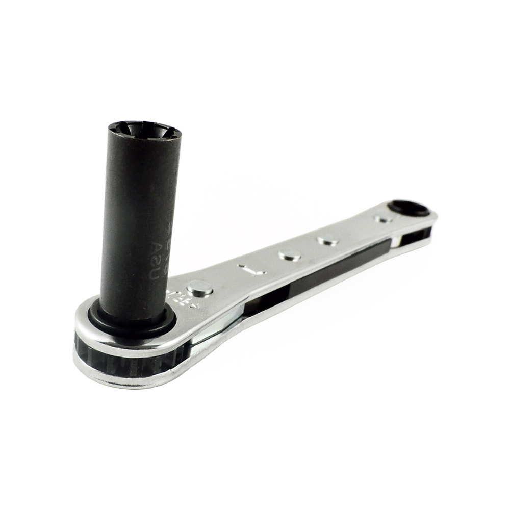 5/32” Six-Wing® collar removal tool with ratchet and drive socket, straight handle, extended socket. When fitted into the flat box-ratchet handle, these sockets provide easy removal, while at the same time preventing re-installation or re-use of the removed collars. New collars must be used to insure proper torque.