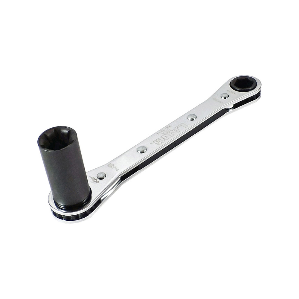 3/8” Six-Wing® collar removal tool with ratchet and drive socket, straight handle, extended socket. When fitted into the flat box-ratchet handle, these sockets provide easy removal, while at the same time preventing re-installation or re-use of the removed collars. New collars must be used to insure proper torque.