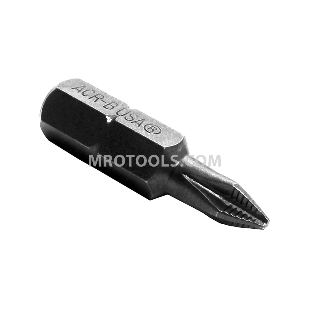 #1 Phillips ® Zephyr insert bit, 1/4″ hex shank, for industrial or self tapping screws, extra hard, 1″ overall length ACR both directions. Equivalent to Apex 440-1 ACR1X