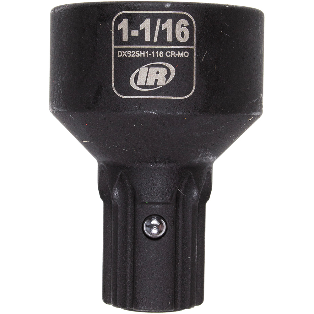 Manufactured from impact-grade CR-MO (chrome-molybdenum) alloy steel and coated with a manganese phosphate finish, these sockets offer exceptional toughness and corrosion resistance. Each socket features relieved 6-point hex corners to reduce fastener rounding, along with laser-etched size markings for high visibility. The ball nose retention pin enables quick, tool-free installation, and a square retention pin conversion kit is available for added compatibility. Backed by a limited lifetime warranty and built to ASME B107.110 standards, the DXS2SH1-116 Ingersoll Rand 1-1/16” Standard 6-Point DXS2 Socket offers proven reliability.