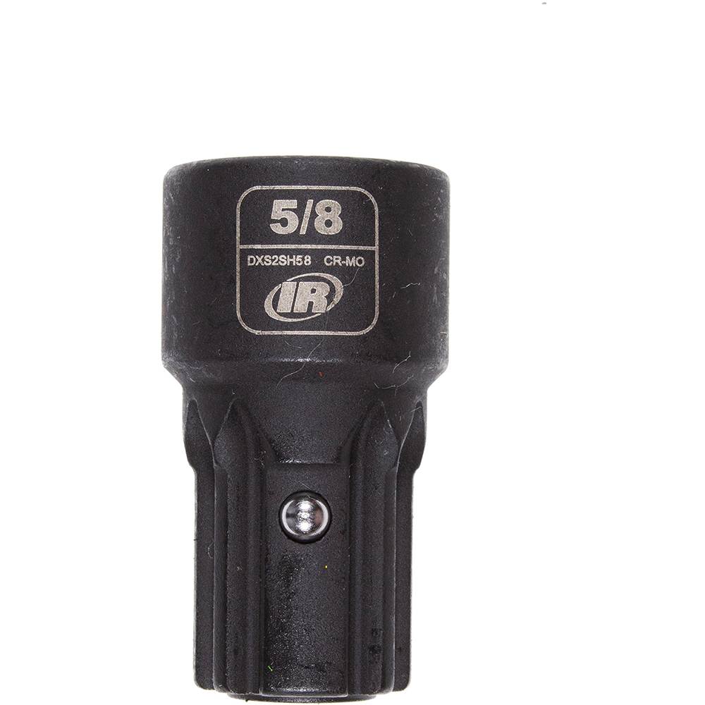 Manufactured from impact-grade CR-MO (chrome-molybdenum) alloy steel and coated with a manganese phosphate finish, these sockets offer exceptional toughness and corrosion resistance. Each socket features relieved 6-point hex corners to reduce fastener rounding, along with laser-etched size markings for high visibility. The ball nose retention pin enables quick, tool-free installation, and a square retention pin conversion kit is available for added compatibility. Backed by a limited lifetime warranty and built to ASME B107.110 standards, the DXS2SH58 Ingersoll Rand 5/8” Standard 6-Point DXS2 Socket offers proven reliability.