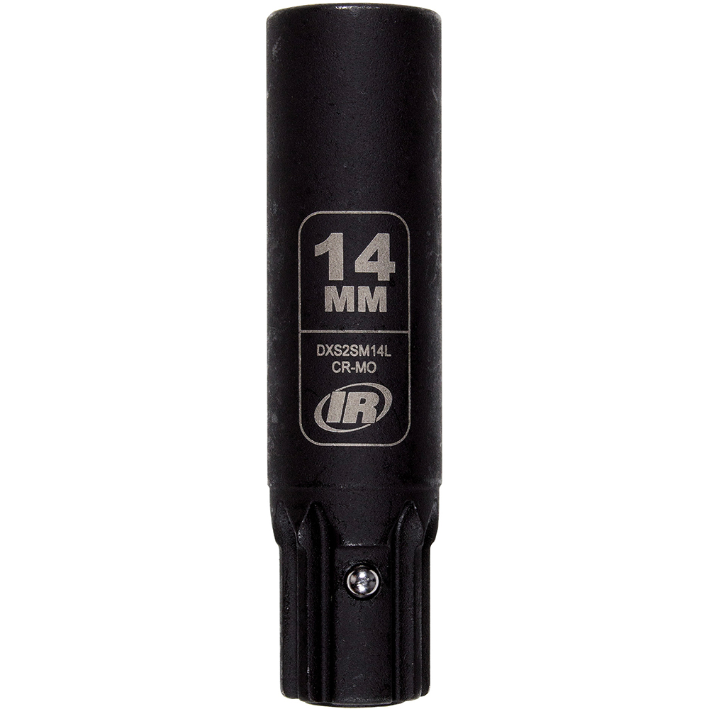 Manufactured from impact-grade CR-MO (chrome-molybdenum) alloy steel and coated with a manganese phosphate finish, these sockets offer exceptional toughness and corrosion resistance. Each socket features relieved 6-point hex corners to reduce fastener rounding, along with laser-etched size markings for high visibility. The ball nose retention pin enables quick, tool-free installation, and a square retention pin conversion kit is available for added compatibility. Backed by a limited lifetime warranty and built to ASME B107.110 standards, the DXS2SM14L Ingersoll Rand 14mm Deep 6-Point DXS2 Socket offers proven reliability.