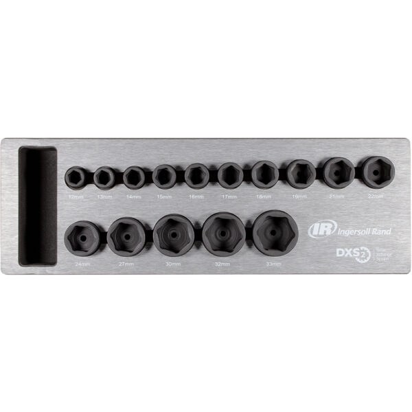 DXSK2M15 Ingersoll Rand 15PC Standard Metric 6-Point DXS2 Impact Socket Set. Product Length: 16.38” Product Width: 5.44” Product Height: 2.5” Product Weight: 4.38lbs Product Length: 416mm Product Width: 138mm Product Height: 64mm Product Weight: 1.99kg