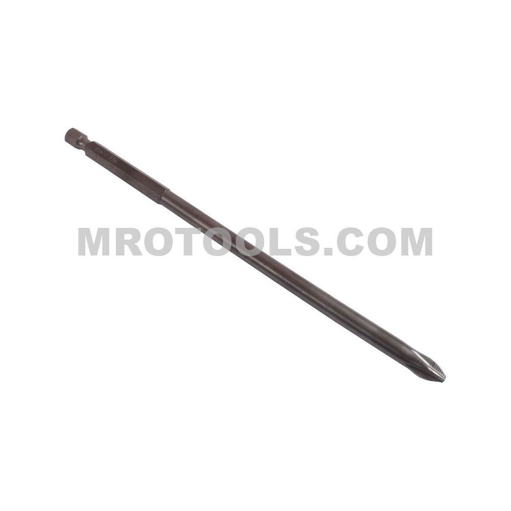 #1 Phillips ® Zephyr power bit, 1/4” hex shank, aircraft intermediate hardness, 6” overall length, ACR installation ribs.