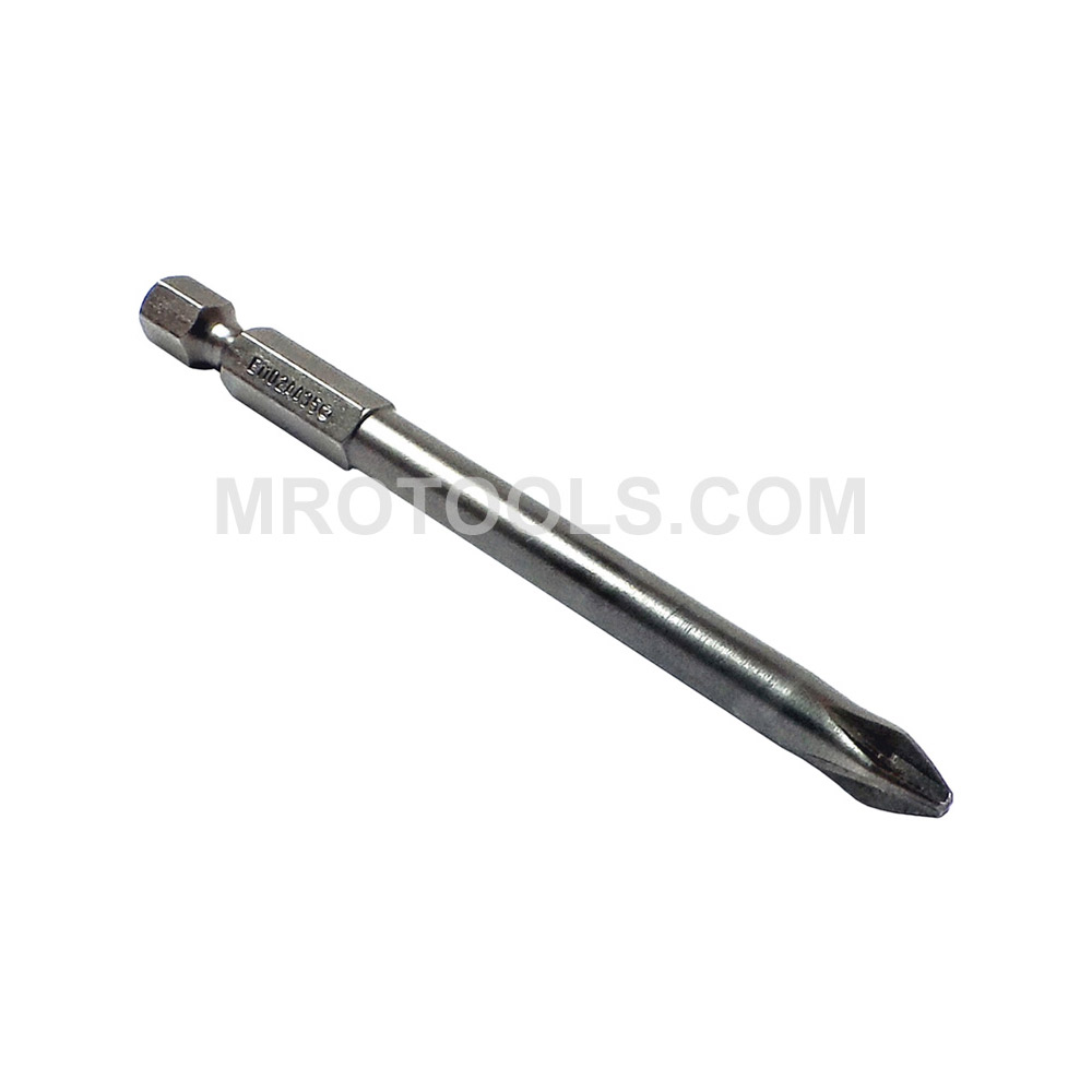#2 Phillips ® Zephyr power bit, 1/4” hex shank, aircraft intermediate hardness, 3-1/2” overall length, ACR removal ribs.