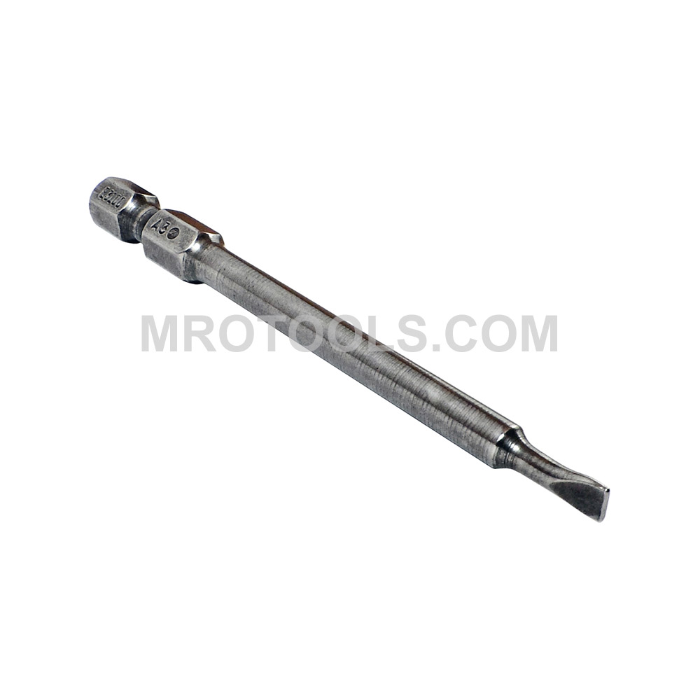 Zephyr 1/4” slotted hex shank power drive bit. These slotted screwdriver bits are aircraft or machine screw bits, with intermediate hardness.