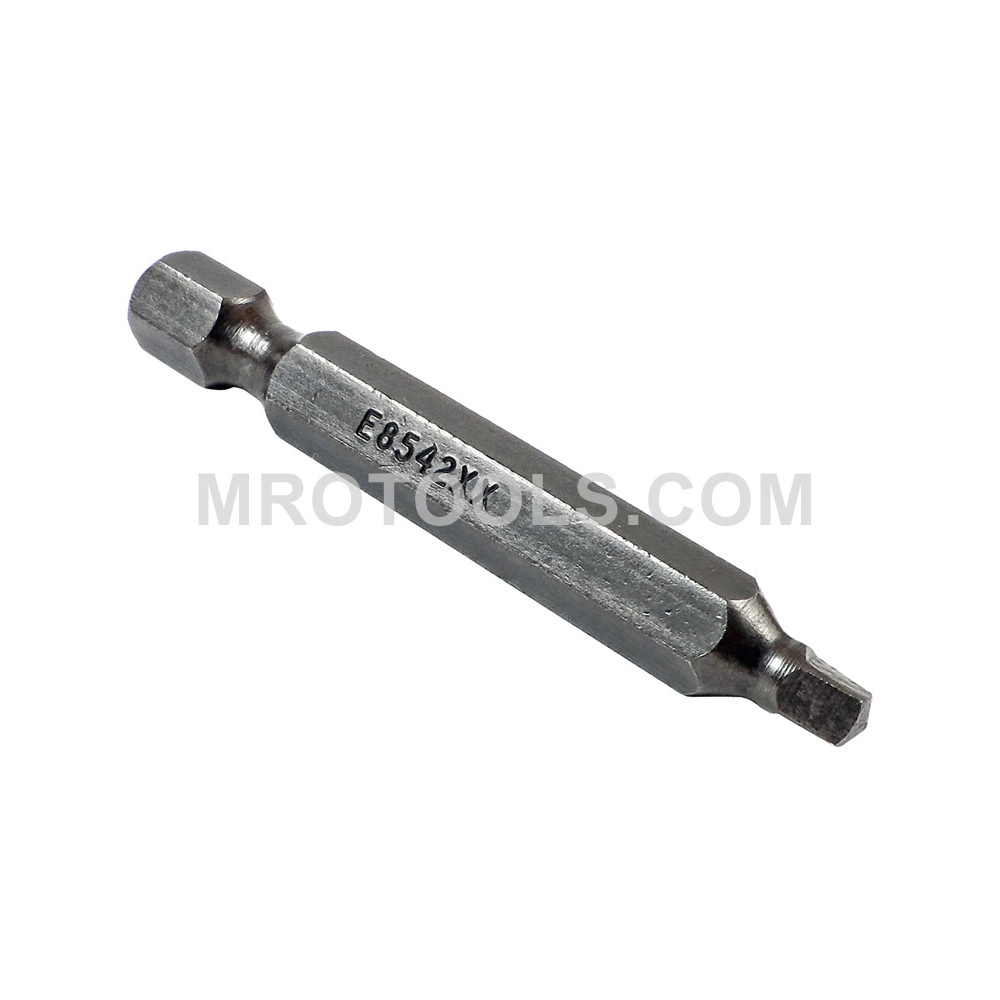 Zephyr square recess power drive bit #2, 1/4” hex shank, 1 15/16” overall length. The four sides of Zephyr square recess screwdriver bits are at right-angles to each other. The opposite sides of square recess bits are parallel.