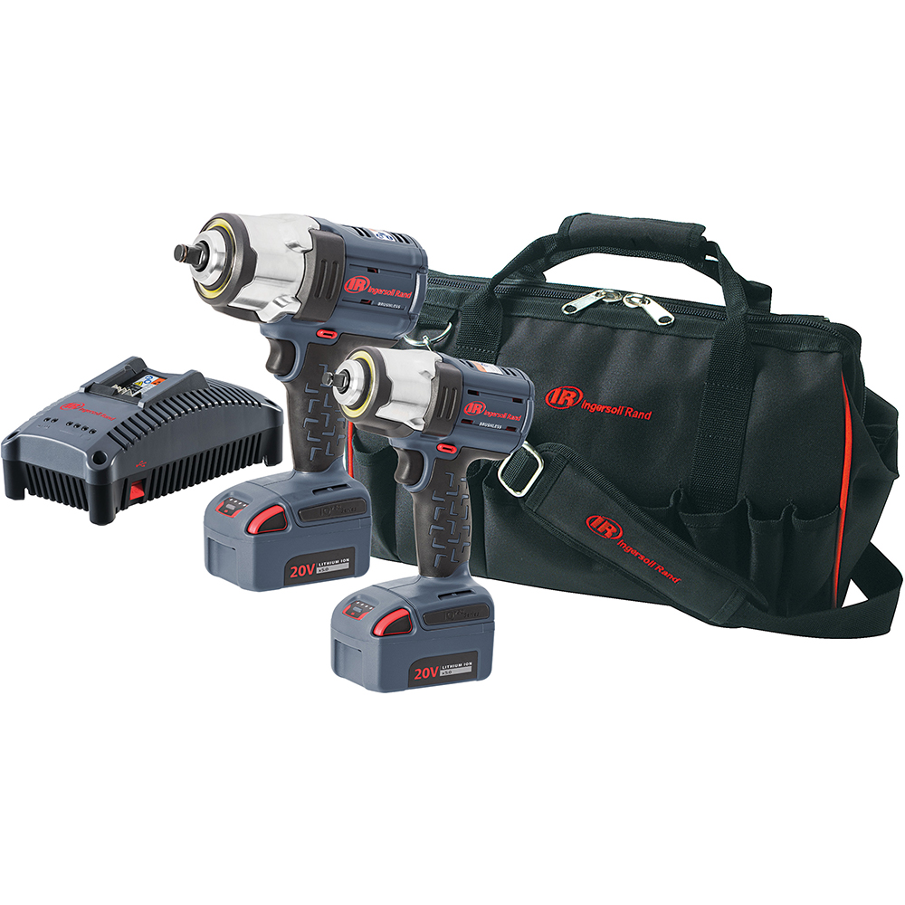 This configuration includes W7152 1/2” Cordless Impact Wrench, W5133 3/8” Cordless Impact Wrench, (2) BL2022 5.0Ah Batteries, (1) 20V Battery Charger, Tool Bag.