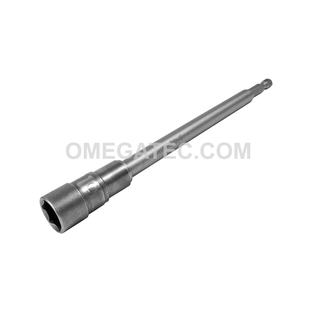 Apex® 1/4” square power drive universal extension wrench, SAE, tension type, 6 point square drive opening. Hex Opening: 1/2” Shank Length: 6” Socket Length: 7/8” Socket Diameter: 11/16” Nose End Diameter: 11/16” Clearance Depth: 1/2”