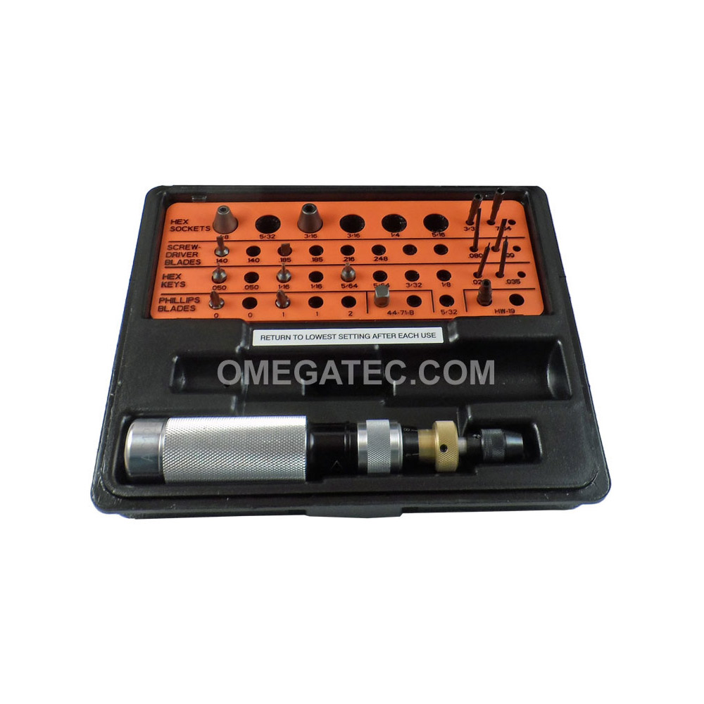 20 piece Utica torque limiting standard model screwdriver kit. Range 20-100 in.-oz. TS-100 Adjustable torque screwdriver 1/4” female hex.