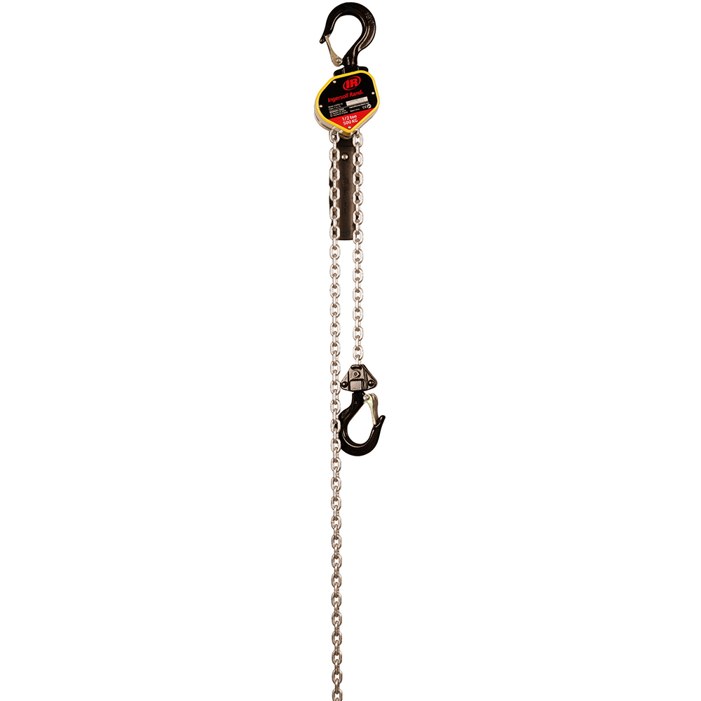 KX050-10 Ingersoll Rand 0.5 Ton Capacity Manual Mini Lever Hoist With 10ft Lift. Brake Type: Double Pawl, Disc Brake System Capacity: 1100lbs / 0.5mt Chain Fall: 1 Chain Size: 4.3mm x 12mm Chain Weight of lift: 0.26 lbs/ft Clutch Type: None