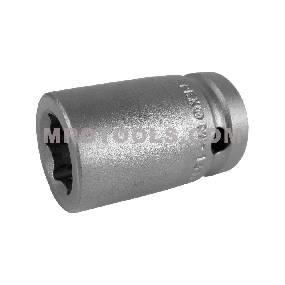 Apex® 1/2” square drive metric sockets, magnetic, standard length, 6 point square drive opening. Hex Opening: 13mm Overall Length: 38.1mm Diameter Nose End: 22.2mm Diameter Drive End: 23.8mm Opening Depth: 8.7mm