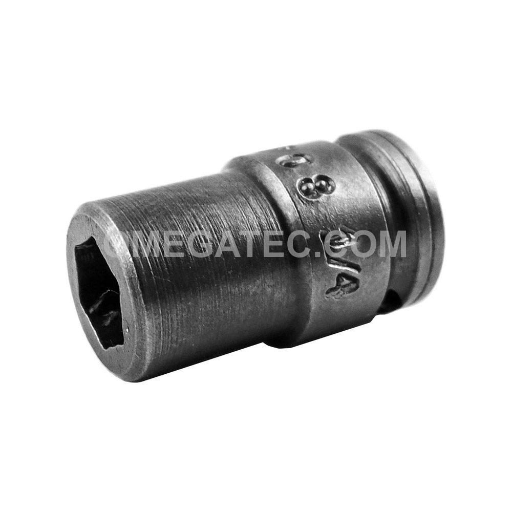 Apex® 1/4” square drive for SAE magnetic sockets, for self-drilling, tapping screws, 6 point sq dr opening, for 6 point holes. Hex Opening: 1/4” Overall Length: 7/8” Diameter Nose End: 7/16” Diameter Drive End: 1/2” Opening Depth: 5/32”