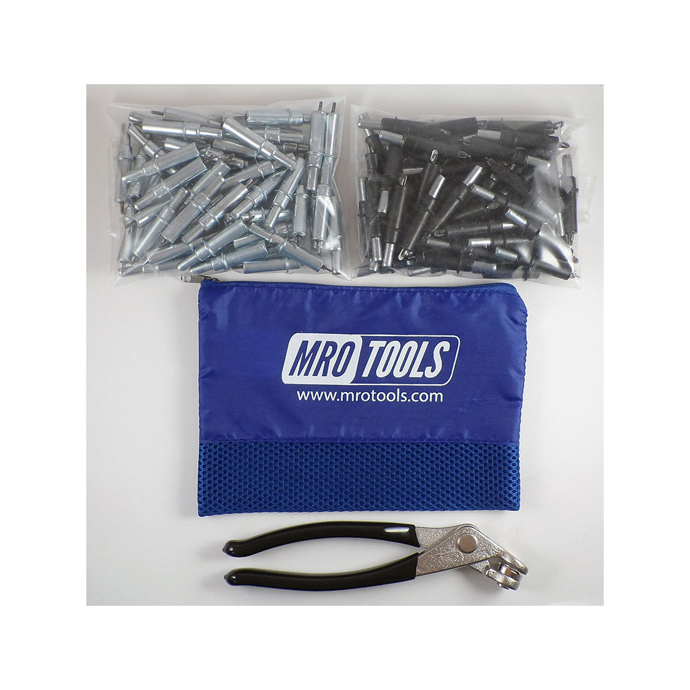 MRO TOOLS Cleco Fastener Sets offers incredible value with its durable, polyester carry bag (6” H x 8.5” W) to hold your Clecos and a pair of Cleco Pliers that are designed for installing spring-loaded fasteners. MRO TOOLS Cleco Fasteners are widely used in automotive, racing, and aircraft sheet metal repair. MRO TOOLS Cleco Fasteners are spring-loaded and steel bodied fasteners that are designed to temporarily fasten multiple sheets of material together before the pieces are permanently joined. MRO TOOLS Cleco Fasteners are a simple and inexpensive alternative to competitive fasteners and are available in various lengths and strengths to accommodate different processes.
