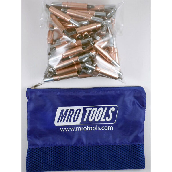 MRO TOOLS Cleco Fastener Sets offers incredible value with its durable, polyester carry bag (6” H x 8.5” W) to hold your Clecos. MRO TOOLS Cleco Fasteners are widely used in automotive, racing, and aircraft sheet metal repair. MRO TOOLS Cleco Fasteners are spring-loaded and steel bodied fasteners that are designed to temporarily fasten multiple sheets of material together before the pieces are permanently joined. MRO TOOLS Cleco Fasteners are a simple and inexpensive alternative to competitive fasteners and are available in various lengths and strengths to accommodate different processes.