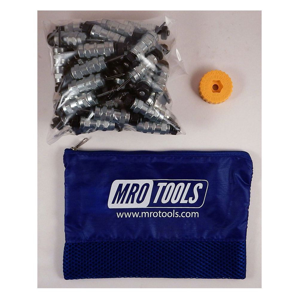 MRO TOOLS Cleco Fastener Sets offers incredible value with its durable, polyester carry bag (6” H x 8.5” W) to hold your Clecos and an MRO TOOLS HBHT Hex-Body Cleco Hand Tool. The MRO TOOLS HBHT Hex-Body Cleco Hand Tool is a versatile that can both install and remove all Wing-Nut and Hex-Nut style Cleco Fasteners without any need for power tools, pliers and wrenches. This tool is very easy to use, made of durable materials and is made in the USA. MRO TOOLS Cleco Fasteners are widely used in automotive, racing, and aircraft sheet metal repair. MRO Cleco Fasteners feature a free-wheeling design that allows it to back off while still remaining intact with the body and are designed to temporarily fasten multiple sheets of material together before the pieces are permanently joined. MRO TOOLS Cleco Fasteners are a simple and inexpensive alternative to competitive fasteners and are available in various lengths and strengths to accommodate different processes.