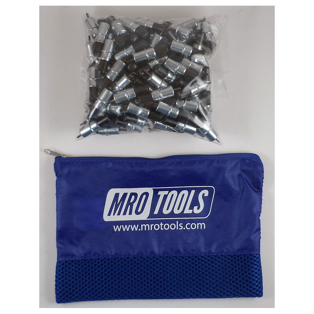 MRO TOOLS Cleco Fastener Sets offers incredible value with its durable, polyester carry bag (6” H x 8.5” W) to hold your Clecos. MRO TOOLS Cleco Fasteners are widely used in automotive, racing, and aircraft sheet metal repair. MRO TOOLS Cleco Fasteners are spring-loaded and steel bodied fasteners that are designed to temporarily fasten multiple sheets of material together before the pieces are permanently joined. MRO TOOLS Cleco Fasteners are a simple and inexpensive alternative to competitive fasteners and are available in various lengths and strengths to accommodate different processes.