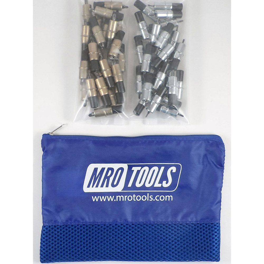 MRO TOOLS Cleco Fastener Sets offers incredible value with its durable, polyester carry bag (6” H x 8.5” W) to hold your Clecos. MRO TOOLS Cleco Fasteners are widely used in automotive, racing, and aircraft sheet metal repair. MRO TOOLS Cleco Fasteners are spring-loaded and steel bodied fasteners that are designed to temporarily fasten multiple sheets of material together before the pieces are permanently joined. MRO TOOLS Cleco Fasteners are a simple and inexpensive alternative to competitive fasteners and are available in various lengths and strengths to accommodate different processes.