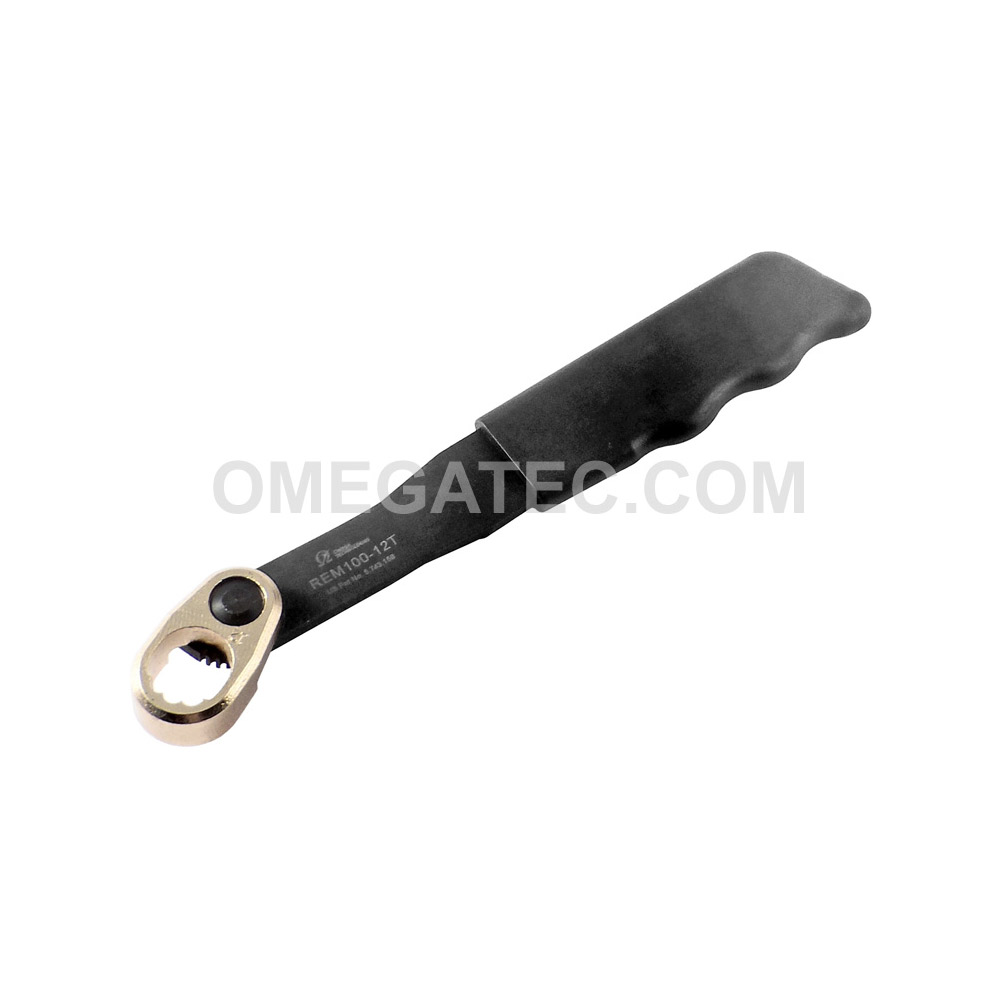 REM 100 series Hi-Lok® collar removal tool with teeth and offset handle. Replaces Fairchild® RT100-12. Dash Size: -12 Diameter Range: 0.614 – 0.649 Width: 0.900 Head Height: 0.500 Handle Length: 8”
