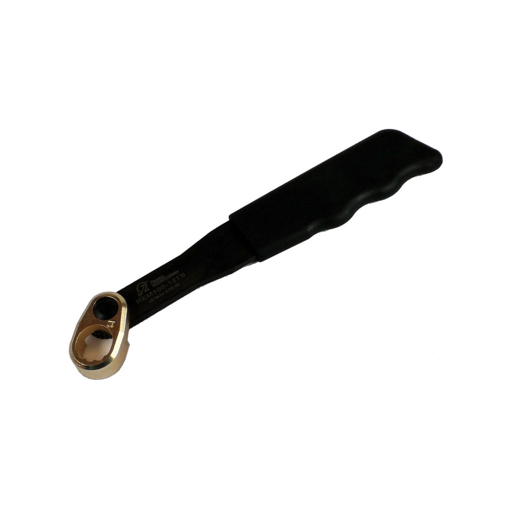 REM 100 series Hi-Lok® collar removal tool with teeth and straight handle. Replaces Fairchild® RT100-12S. Dash Size: -12 Diameter Range: 0.614 – 0.649 Width: 0.900 Head Height: 0.500 Handle Length: 8”