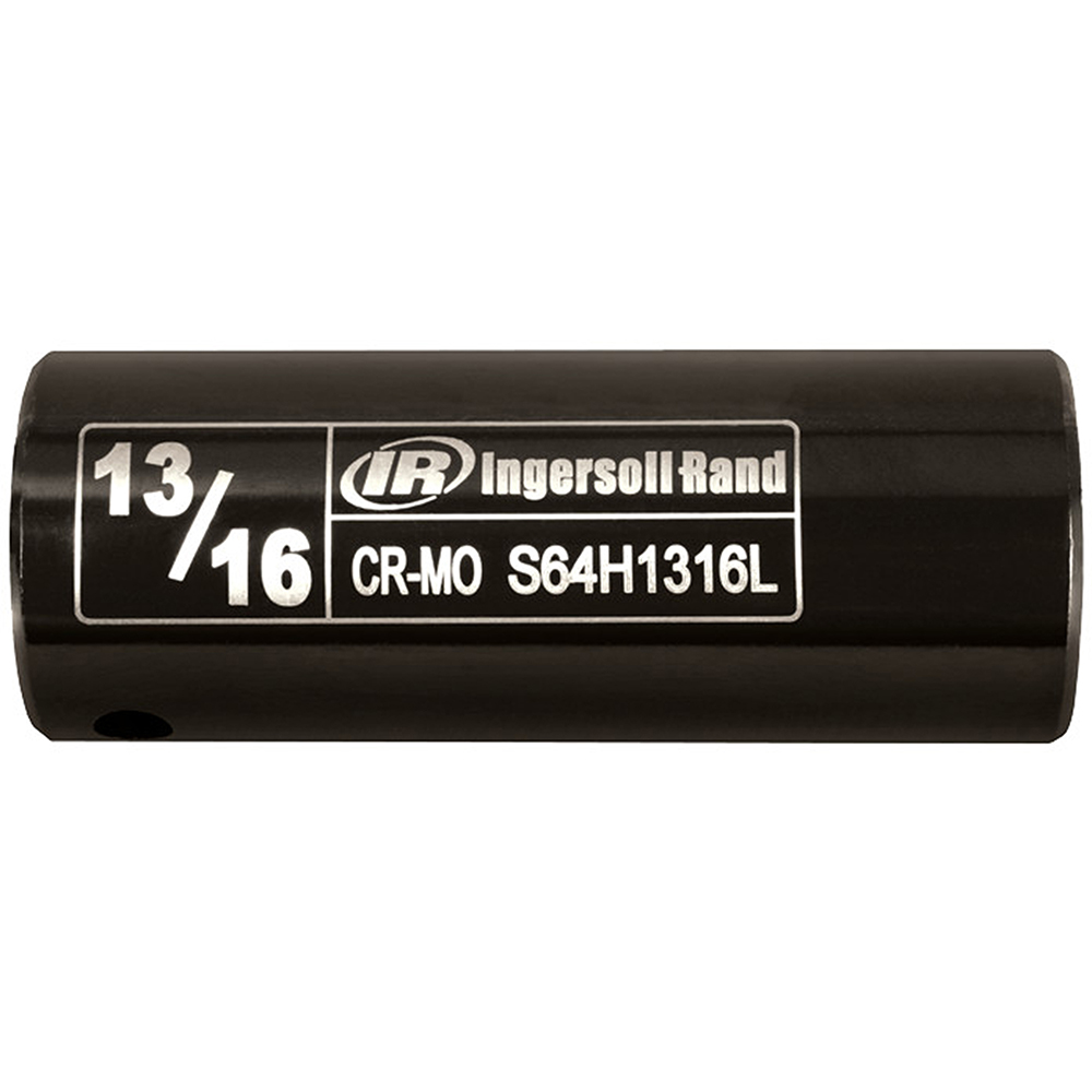 S64H1316L-PS1 Ingersoll Rand 1/2” Drive 6-Point Hex SAE Deep PowerSocket, 13/16” Output. Output Size: 13/16” Weight: 1.2lbs / 0.54kg Product Length: 2.9” / 74mm Product Width: 2.9” / 74mm Product Height: 3.1” / 79mm