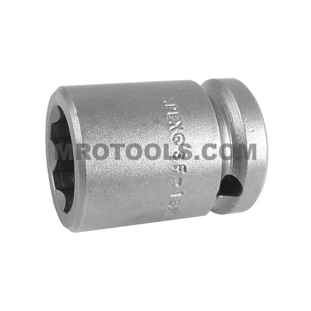 Apex® 1/2” square drive metric sockets, surface drive, standard length, 6 point square drive opening. Hex Opening: 18mm Overall Length: 38.1mm Diameter Nose End: 28.6mm Diameter Drive End: 28.6mm Opening Depth: 11.1mm