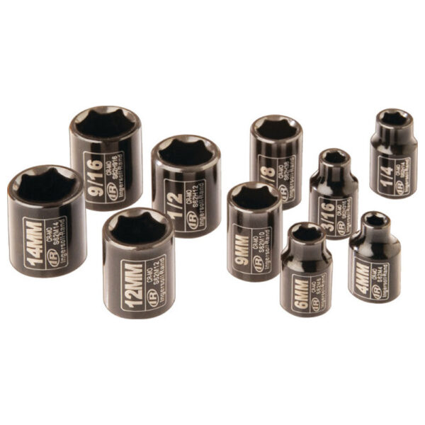 SK2C10N Ingersoll Rand 10PC 1/4” Drive Hex Universal Metric & SAE Impact Socket Set. Warranty: Lifetime Limited Drive Size: 1/4” Drive Type: Square Number of Points: 6 Socket Depth: Standard Socket Bit Type: Hex Socket Measurement Type: SAE/Metric