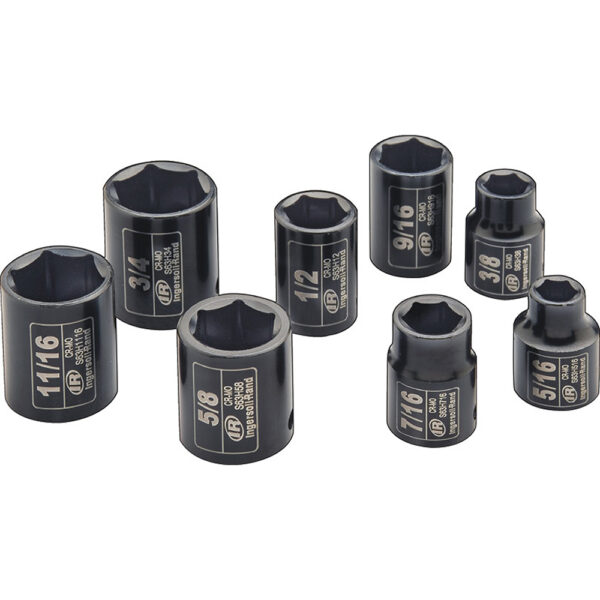 SK3H8N Ingersoll Rand 8PC 3/8” Drive Hex Universal SAE Impact Socket Set. Warranty: Lifetime Limited Special Features: Impact-grade toughness Chrome-molybdenum steel Drive Size: 3/8” Drive Type: Square Finish: Chrome-molybdenum steel